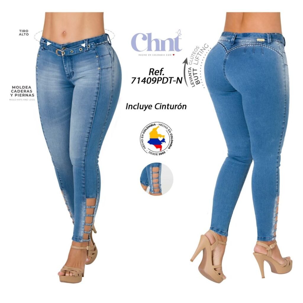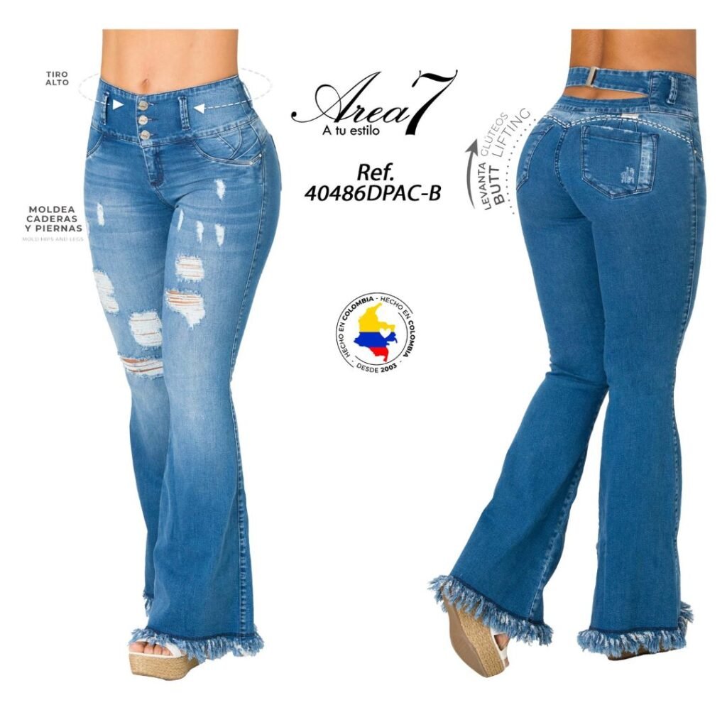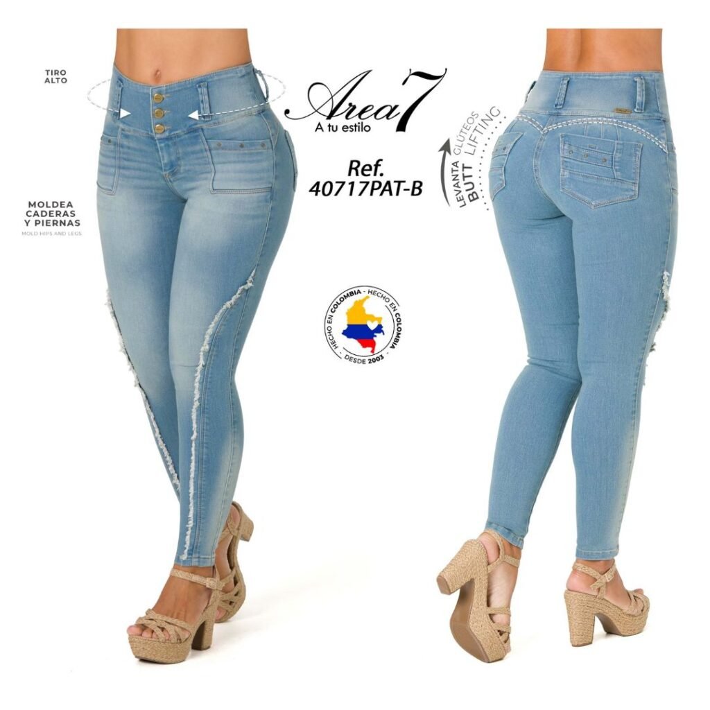 Jeans colombianos de tiro alto que realzan tus curvas y estilizan tu figura.