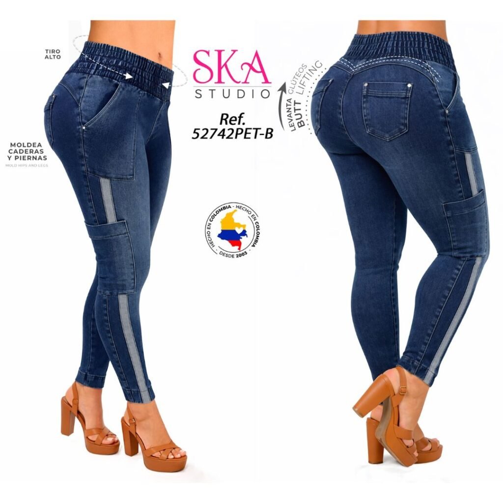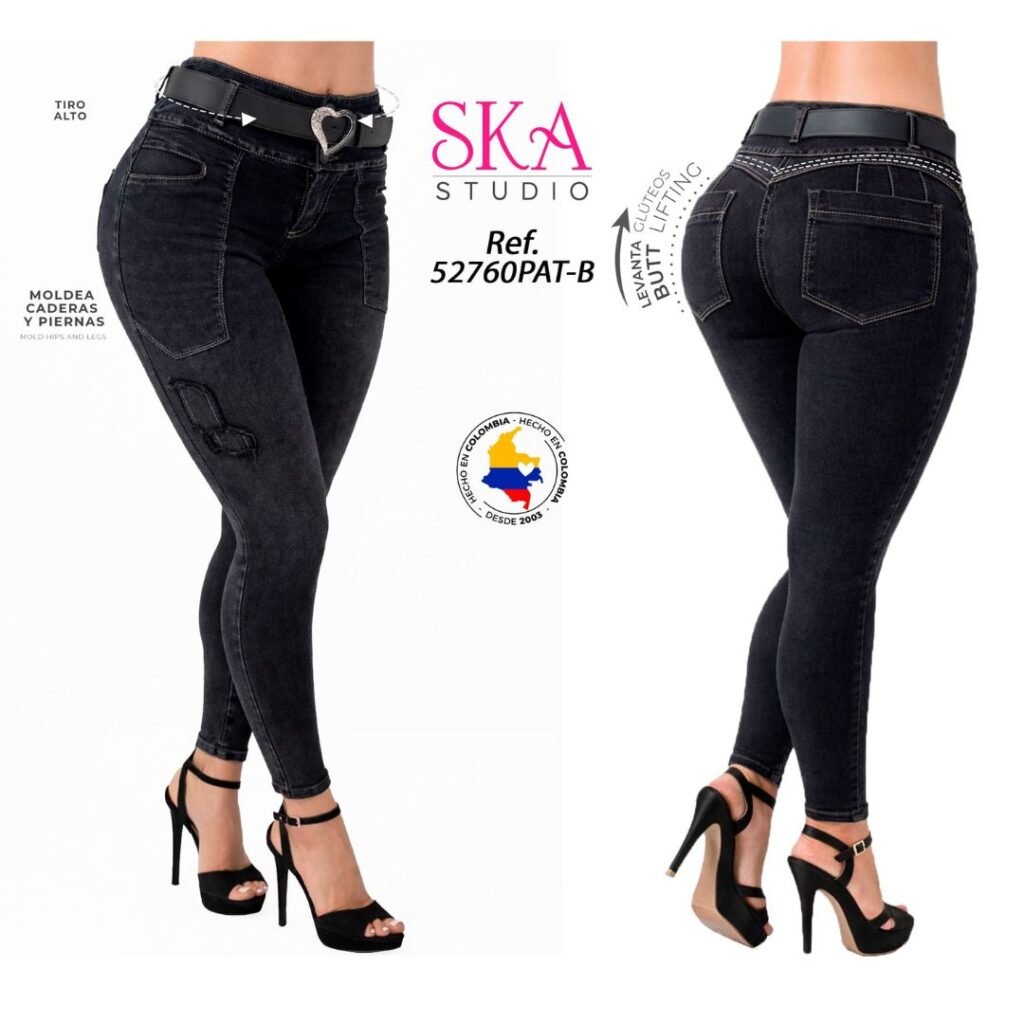 Jeans colombianos de tiro alto levanta cola que controlan tu abdomen y estilizan tus piernas.
