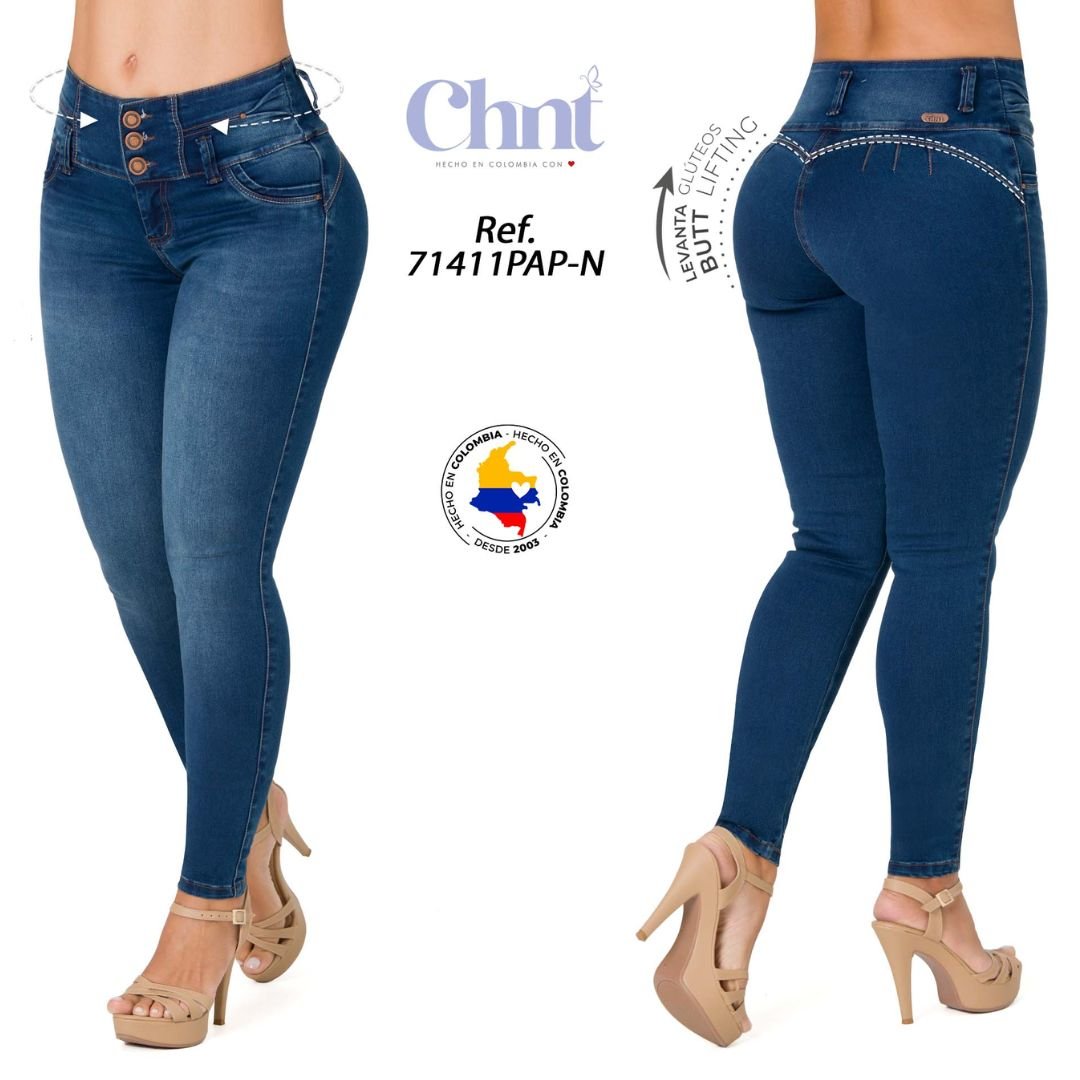 Este jean tiro alto y levantacola es todo lo que necesitas, controla el abdomen, moldea las caderas y realza tus glúteos. Su diseño con cuatro botones y denim elástico se adapta a tu cuerpo, brindándote soporte y comodidad todo el día. ¡Una prenda que te hace sentir segura y fabulosa!